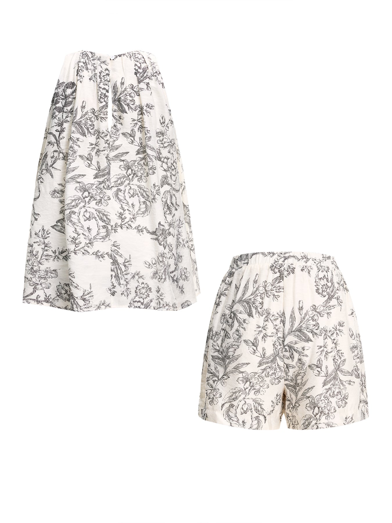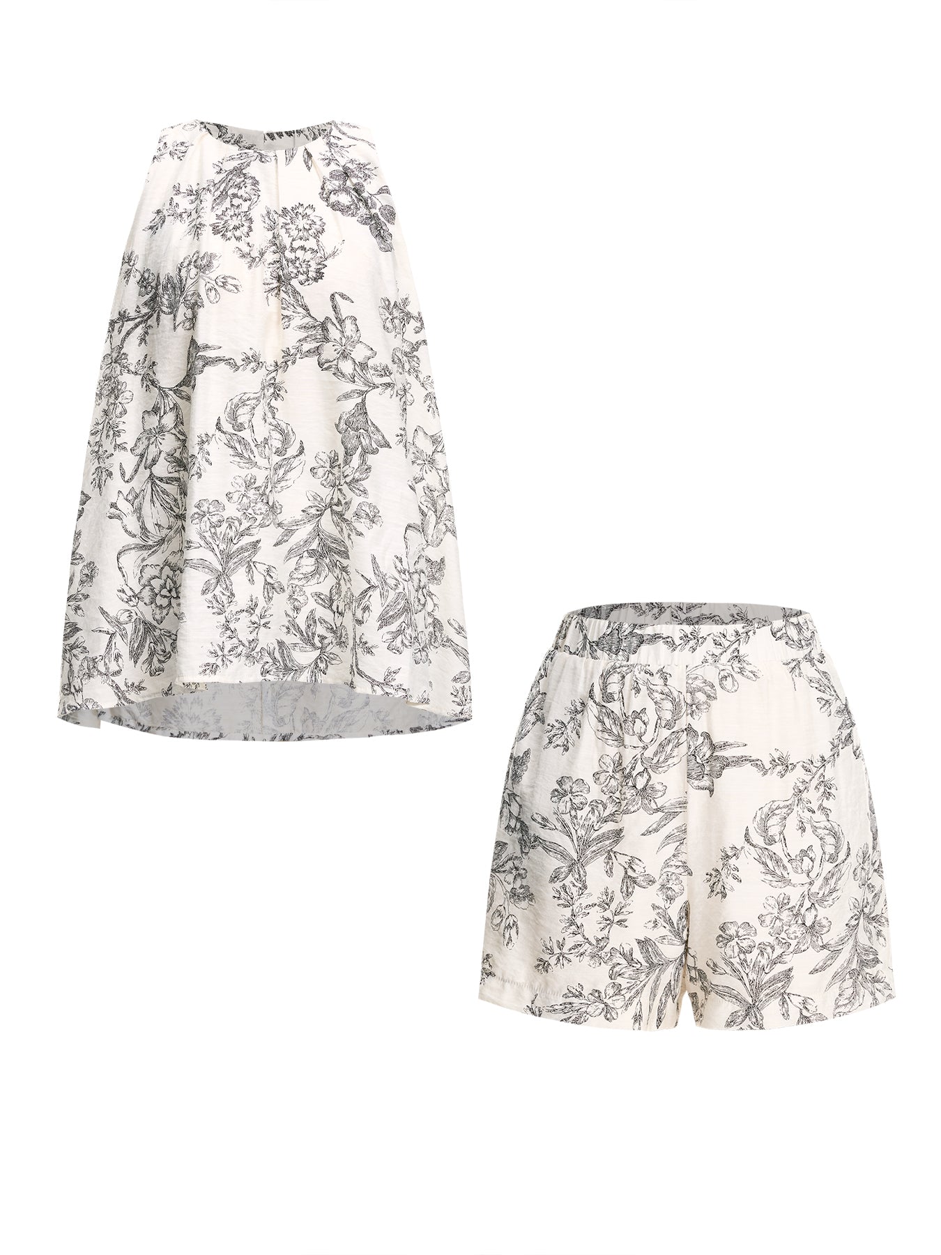 A Line Boho Floral Round Neck Long Women Two-piece Outfits