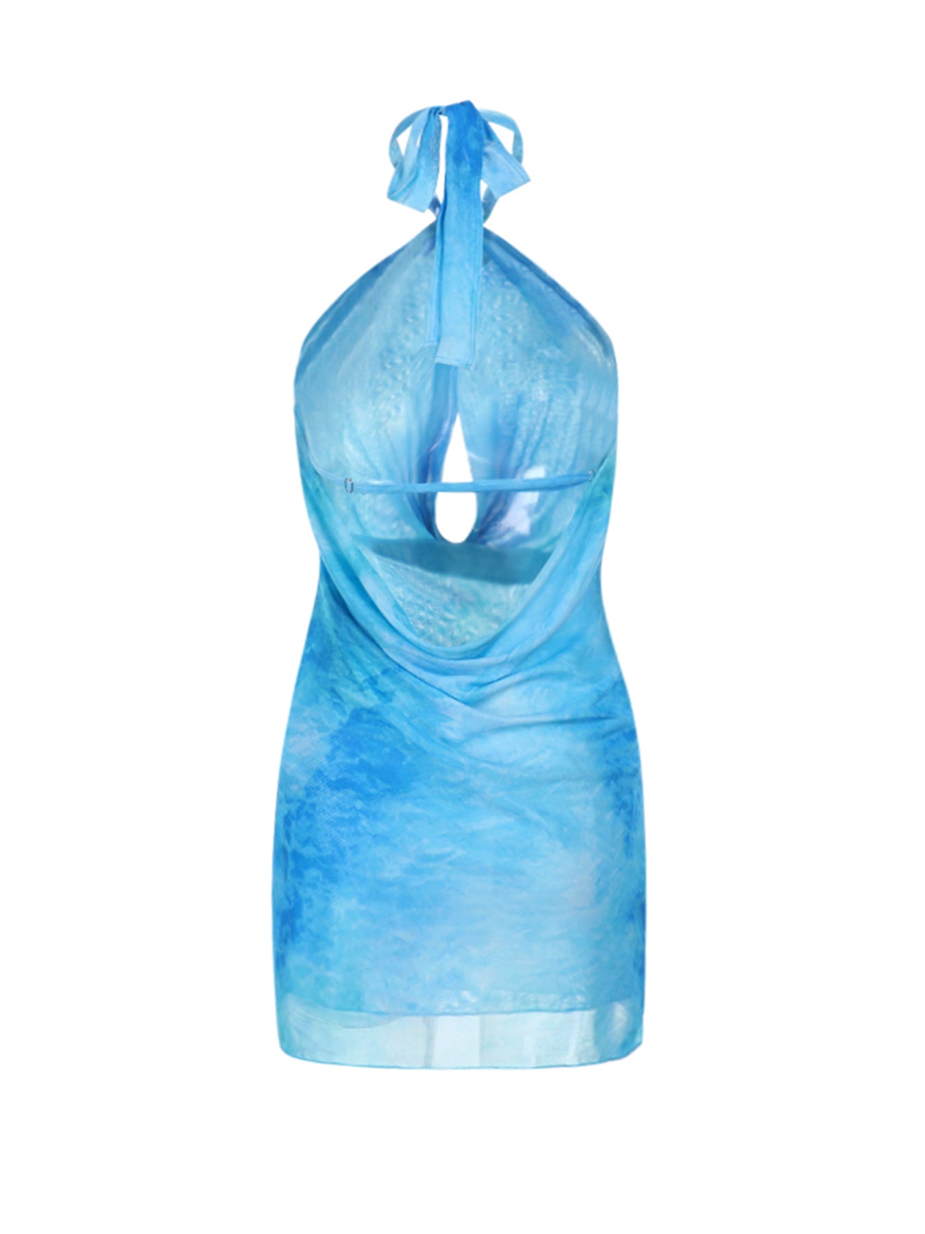 Boho Tie Dye Criss Design Cross Halter Mini Women Vestido